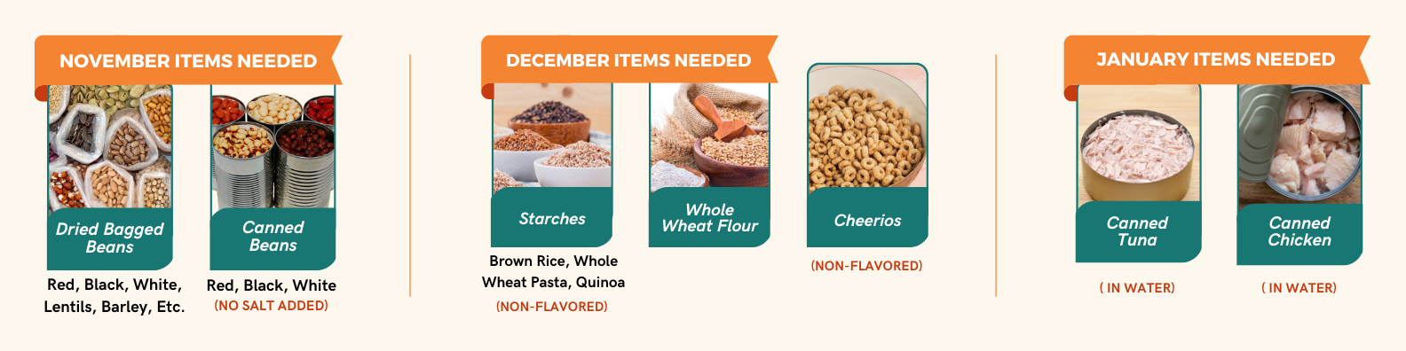 Select Healthtrax and Trax Training & Fitness Centers are collecting needed items the next 90 days…Help us reach our goal of 1000lbs of food! See below for needed items.