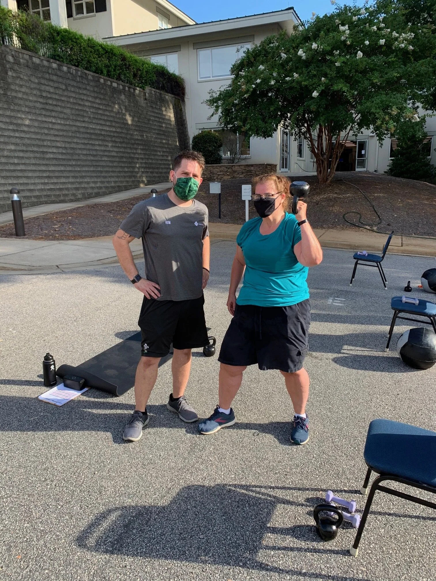 “My Trainer, Josh, met with me virtually when the gym facility was closed due to the current pandemic. Since reopening, I feel like we haven't skipped a beat even if the gym itself looks and operates differently from before. Josh has played a pivotal role in my weight loss journey, and I can't thank him enough for his help to get to where I am today: almost ninety pounds lighter and loving the way I look and feel.”